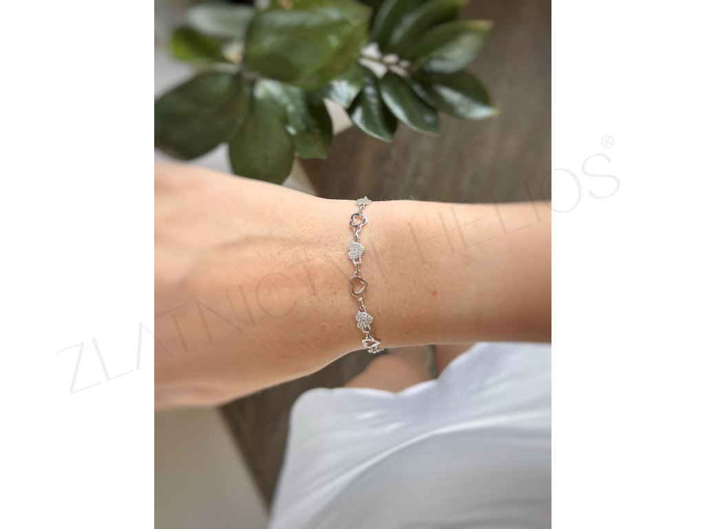 Romantický náramok so srdiečkami vyrobený z bieleho zlata. Každé druhé srdiečko je posádzané drobnými zirkónikmi. Darček z lásky pre ženu či dievča...