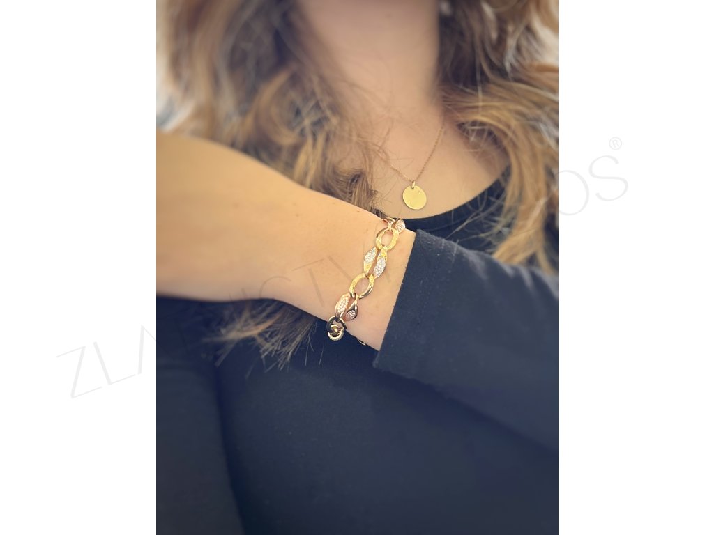 Tento trendy zlatý náramok je výrazný vzorom, spracovaním a krásnymi zirkónmi .