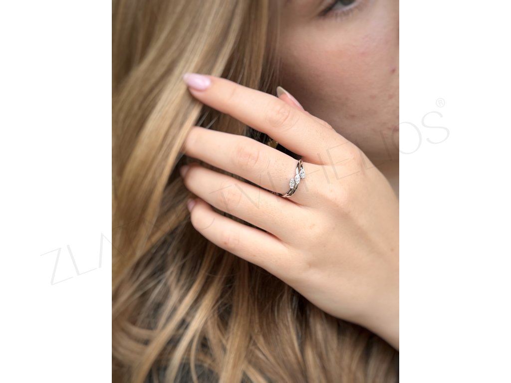 Nežný a jednoduchý prsteň vyrobený z bieleho 14 karátového zlata plný jedinečnosti a dokonalosti. Tento prstienok zdobia tri zirkóny s úžasným výbrusom a dodávajú tak tomuto šperku vysoký lesk. Svojím dizajnom a jemnosťou sa skvele hodí k 18. narodeninám ako prvý zlatý šperk, alebo k ďalším výnimočným príležitostiam.