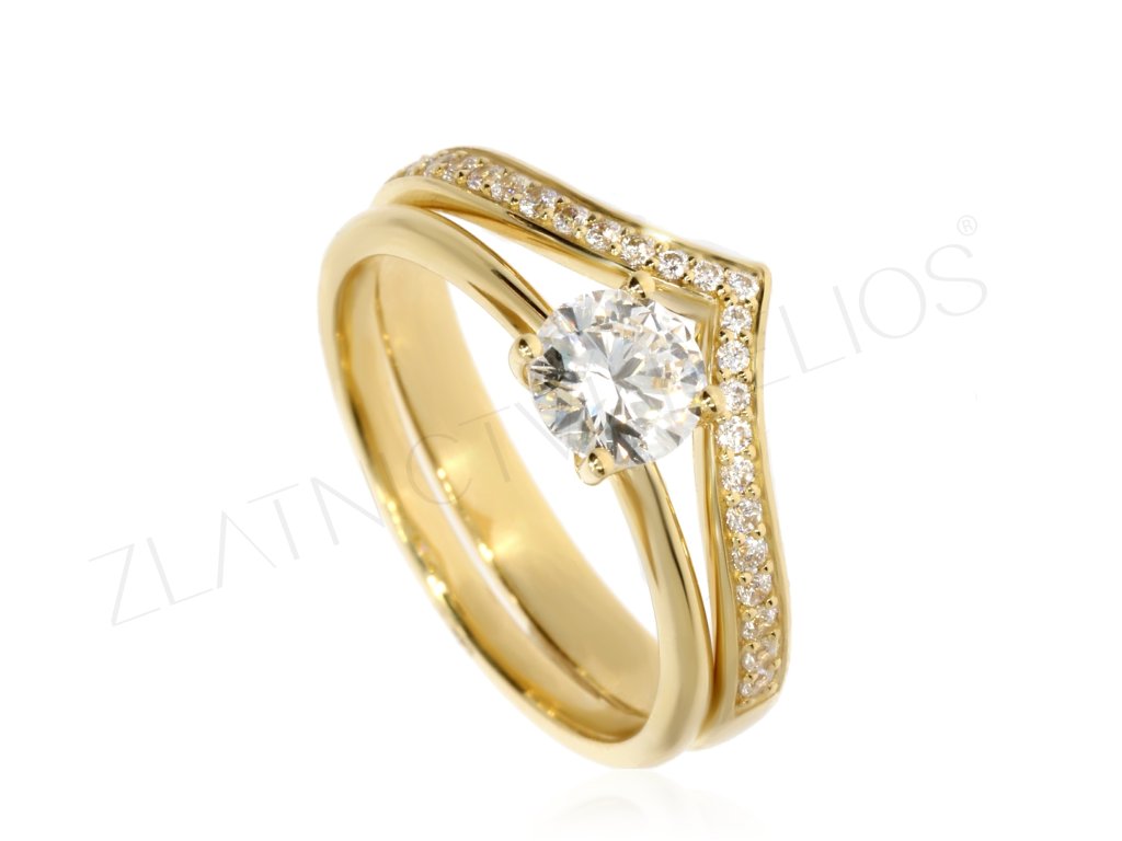 - Vhodný snubní prsten do tvaru V- zejména vedle zásnubního, který má větší středový kámen