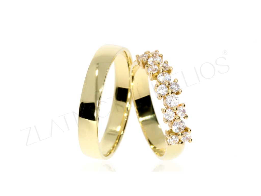 - Dámský snubní prsten ze žlutého zlata zdobený zirkony