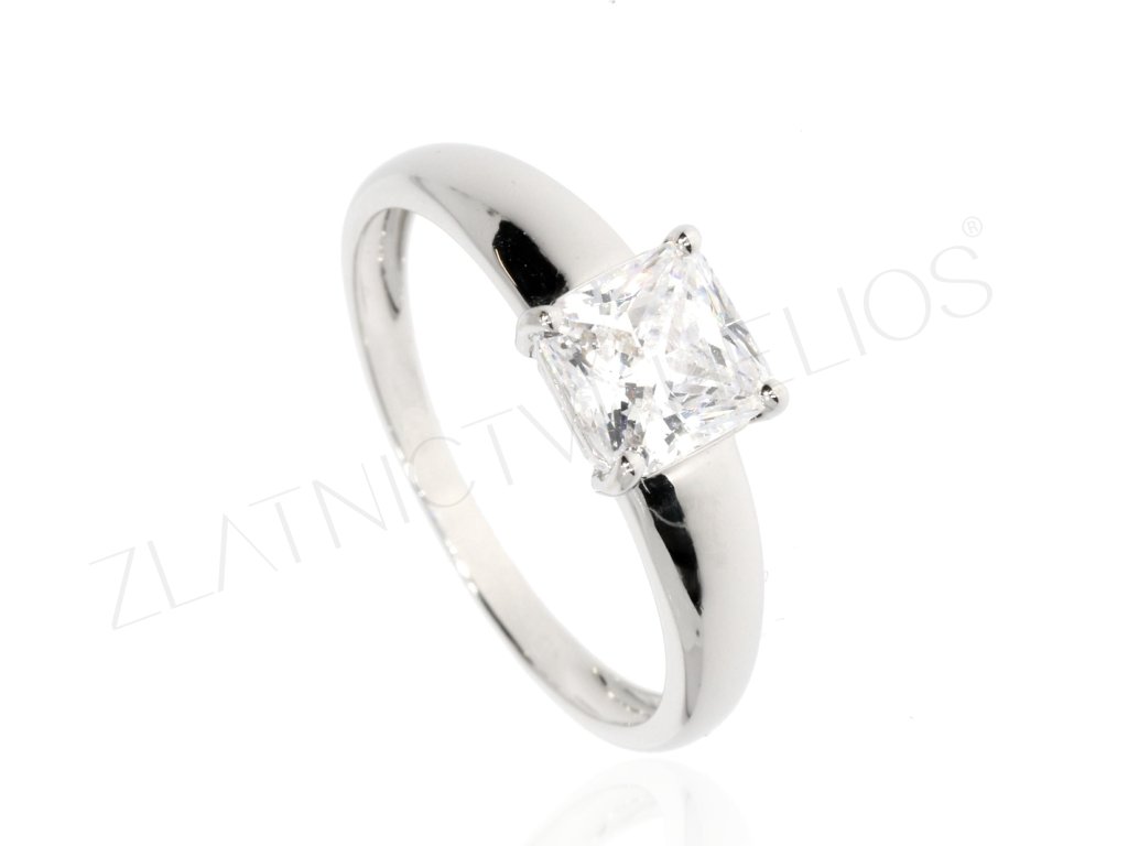 Zlatý prsten se zirkonem. Výrazný čtvercový zirkon je vsazen do širší obroučky z bílého zlata, vynikne tak jeho krásný brus a lom světla. V naší nabídce najdete také náušnice a náhrdelník. Můžete tak vytvořit soupravu šperků. Dárek pro ženu k narozeninám, výročí, nebo jen tak z lásky...