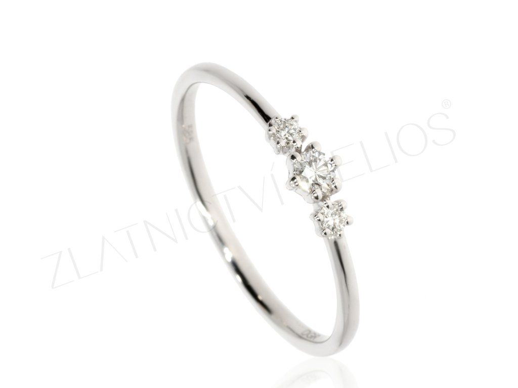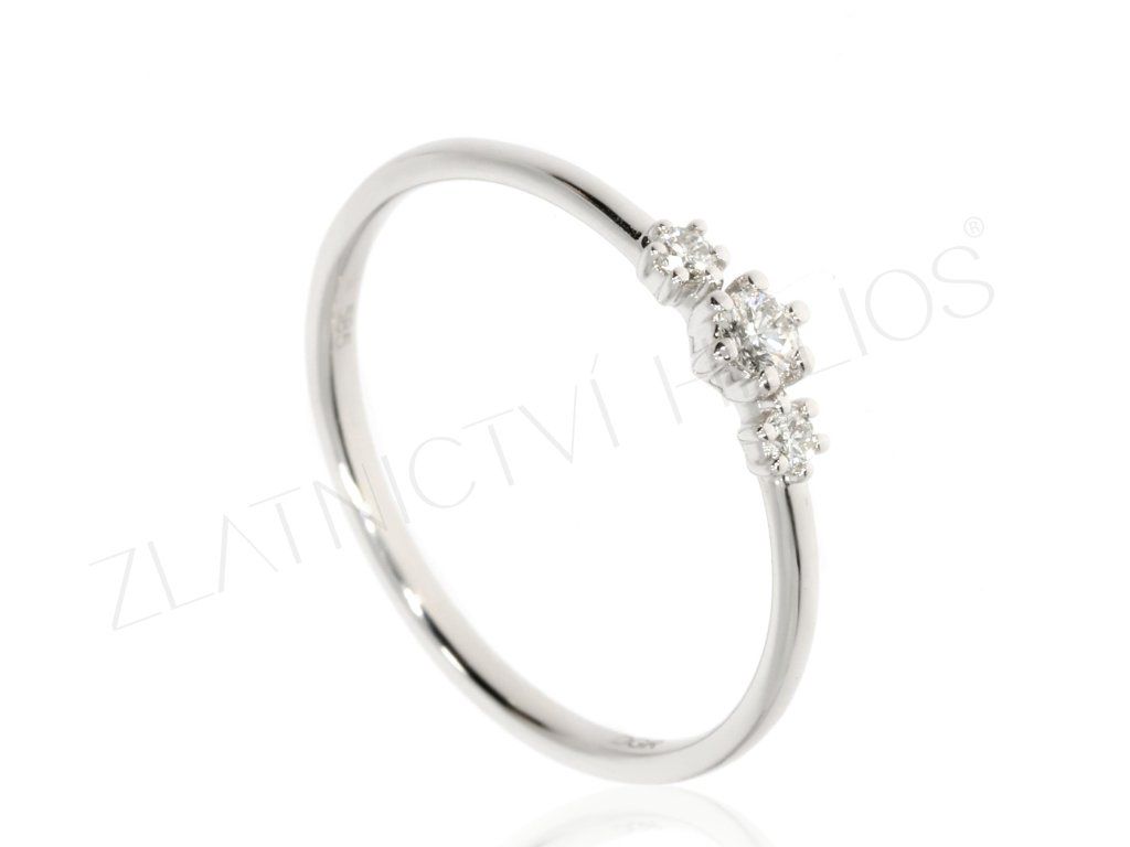 Jemný prsten z bílého zlata se třemi diamanty. Decentní šperk pro ženy, které upřednostňují minimalismus.