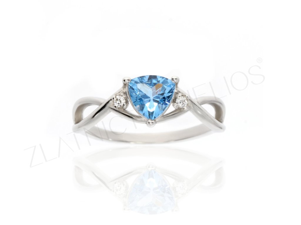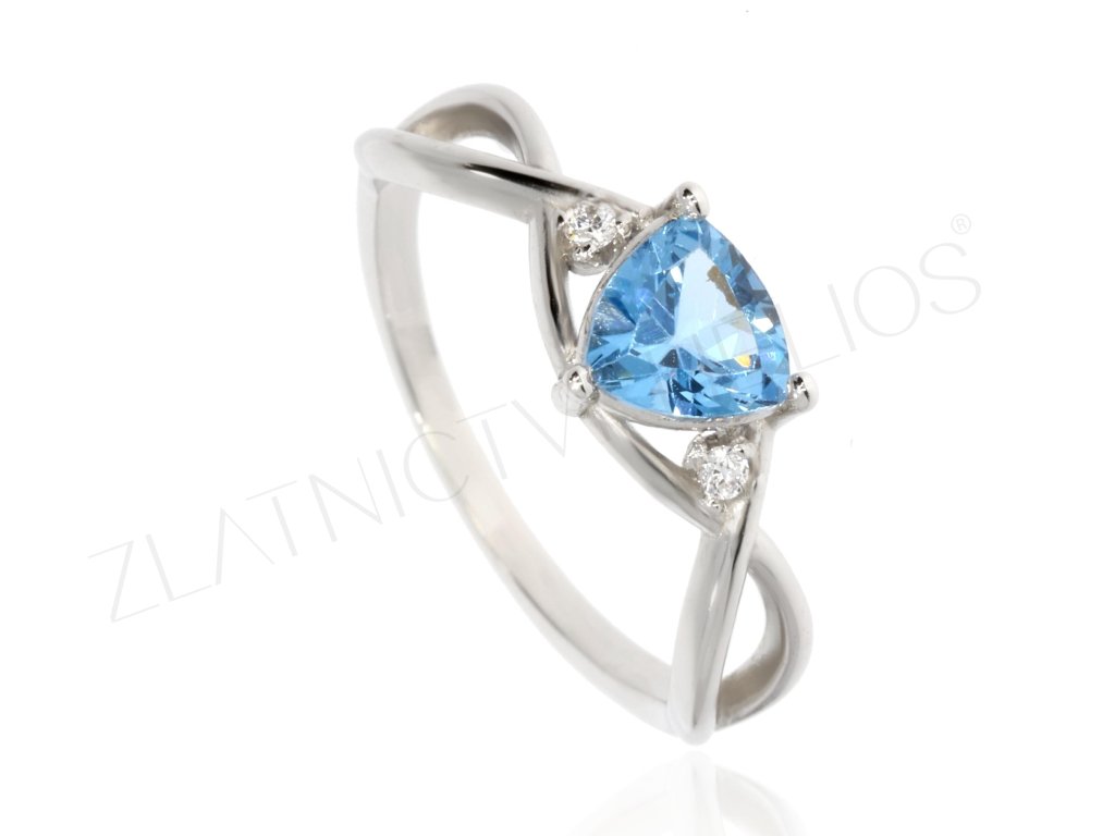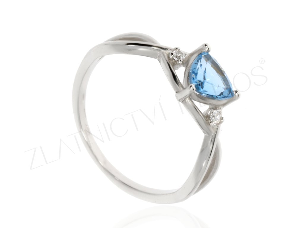 Prsten bílé zlato s modrým kamenem
