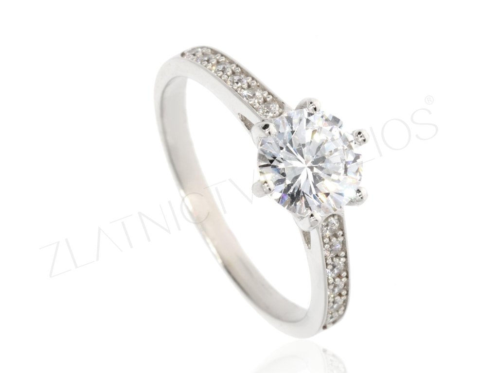 - Zdobený jedním výrazným středovým zirkonem a jemnými zirkony po bocích