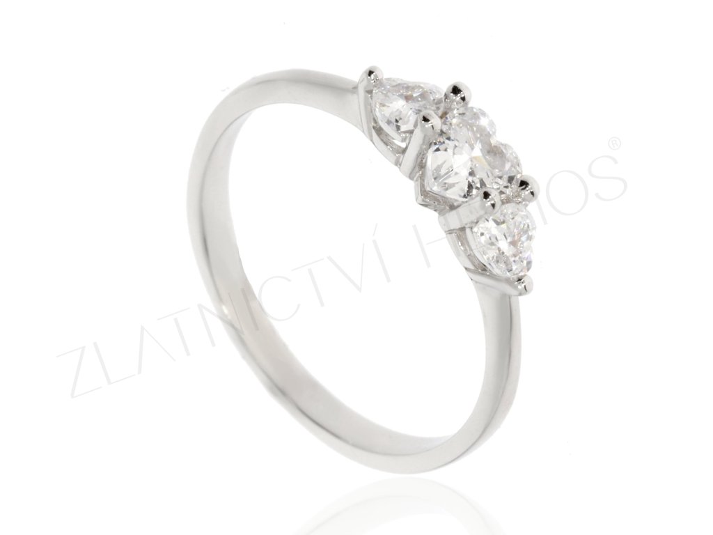 Jemný prsten z bílého zlata se zirkonovými srdíčky.