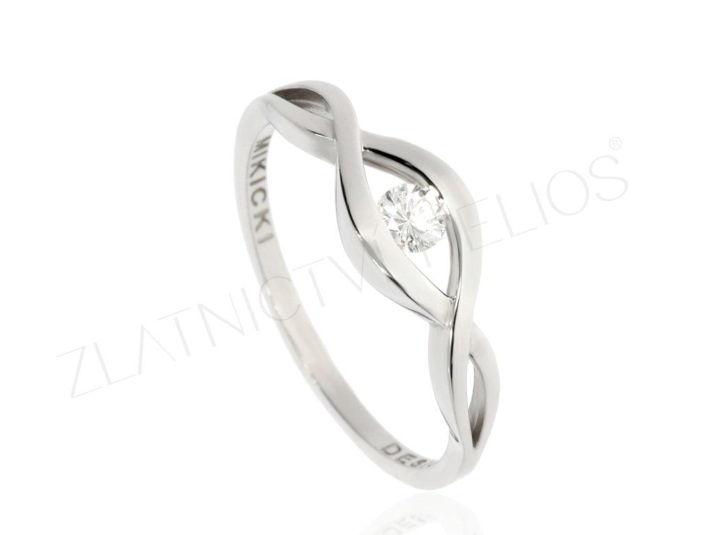 Prsten s diamantem, který je prakticky zapuštěn do lůžka z bílého zlata. Smyslnému třpytu tohoto nesmrtelného kamene nic nebrání a doslova uhrane každou ženu.