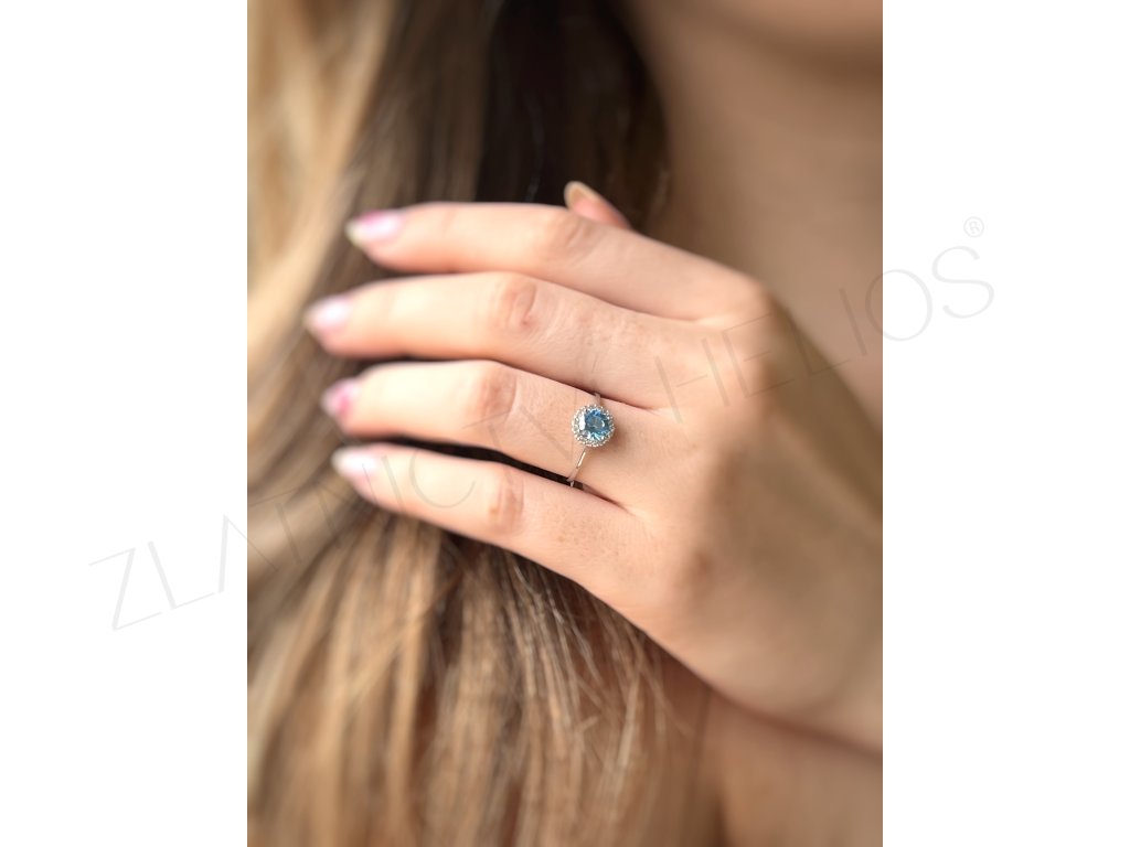 - Zdobený bílými zirkony ,středový kámen světle modrý