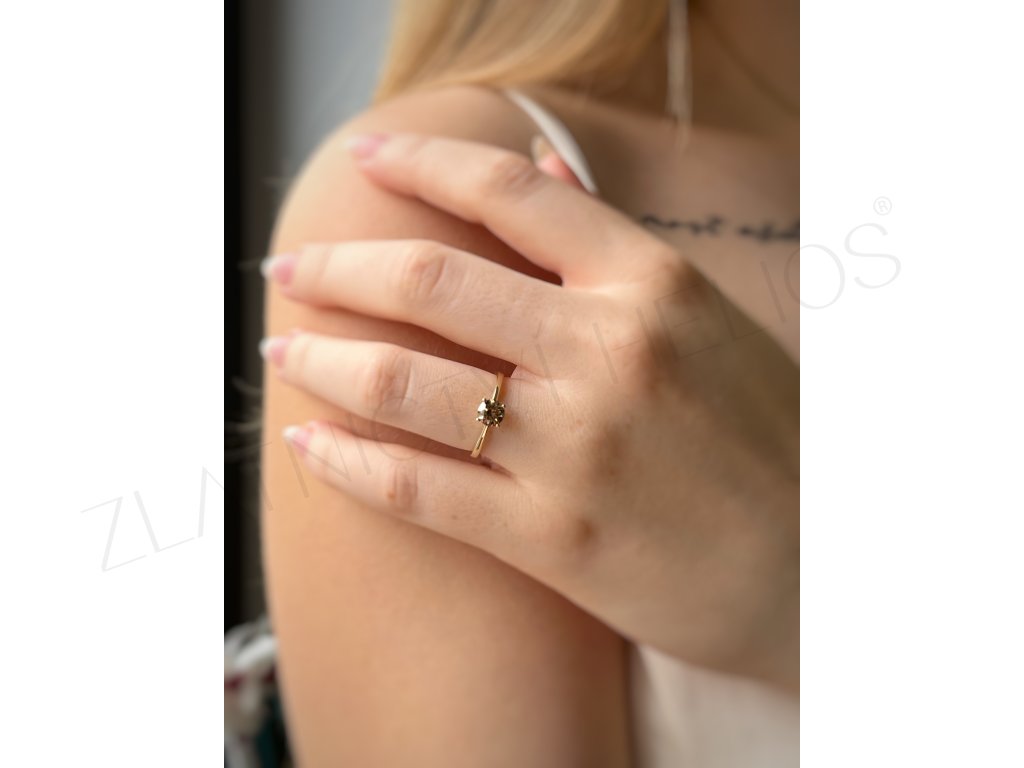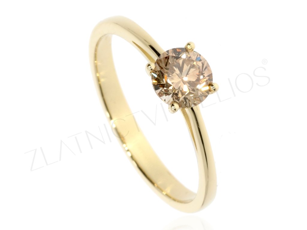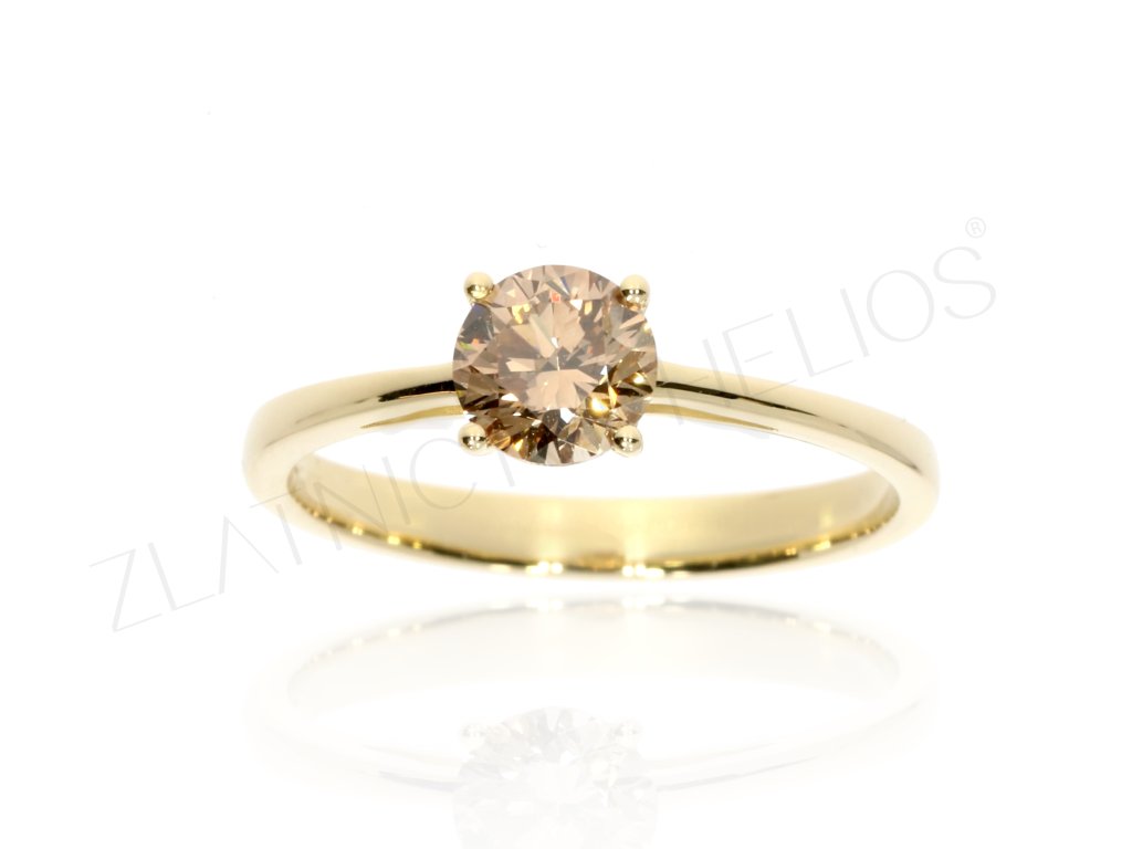 Jedinečný zásnubní prsten Vás zaujme na první pohled svým třpytem. Prstýnek ze 14kt žlutého zlata zdobený diamantem, pevně vsazeným ve středové korunce. Dominantou je diamant natural Brown s briliantovým výbrusem, který je znám svým krásným leskem. Precizní a kvalitní uchycení briliantu, zajišťuje pohodlné nošení. Vhodný jako dárek k narozeninám, ale perfektní pro žádost o ruku.