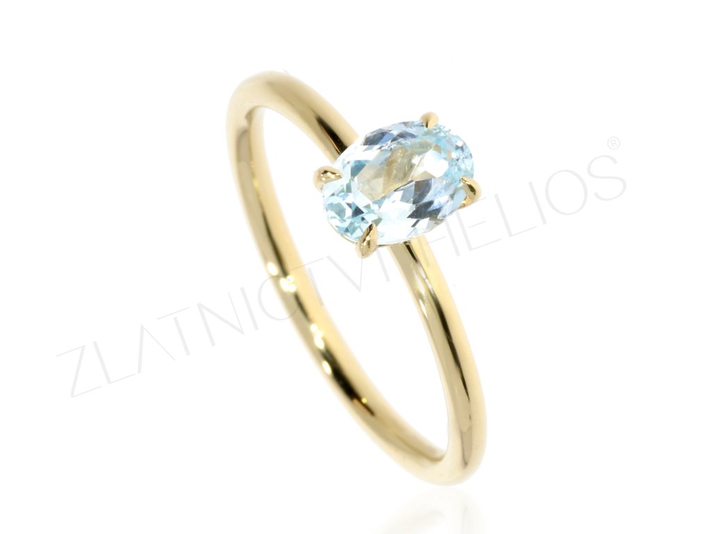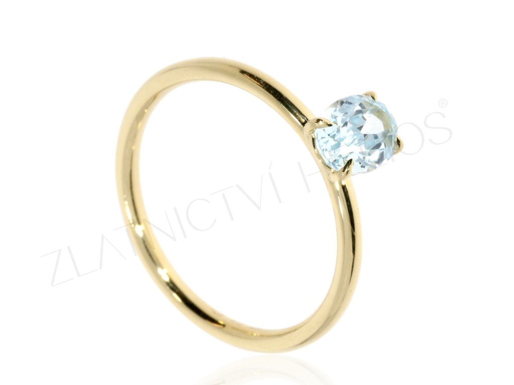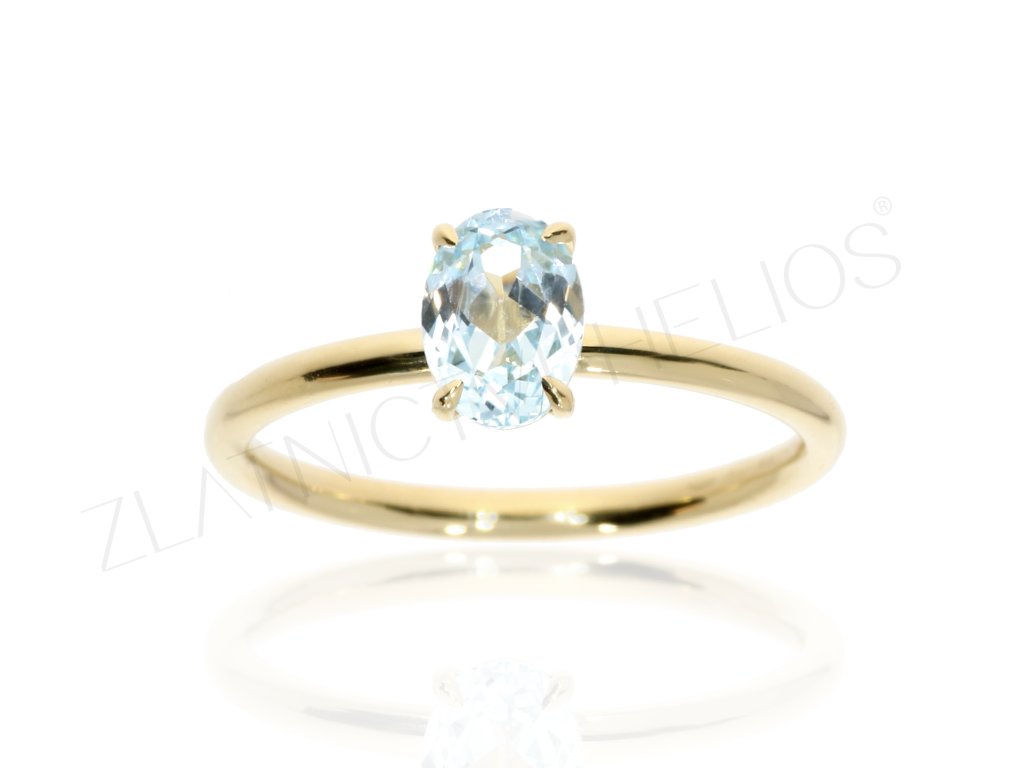 Elegantní prsten ze žlutého zlata zdobí laboratorní akvamarín 1,01ct. Precizní a kvalitní uchycení akvamarínu, zajišťuje pohodlné nošení. Vhodný jako dárek k narozeninám, ale perfektní pro žádost o ruku.