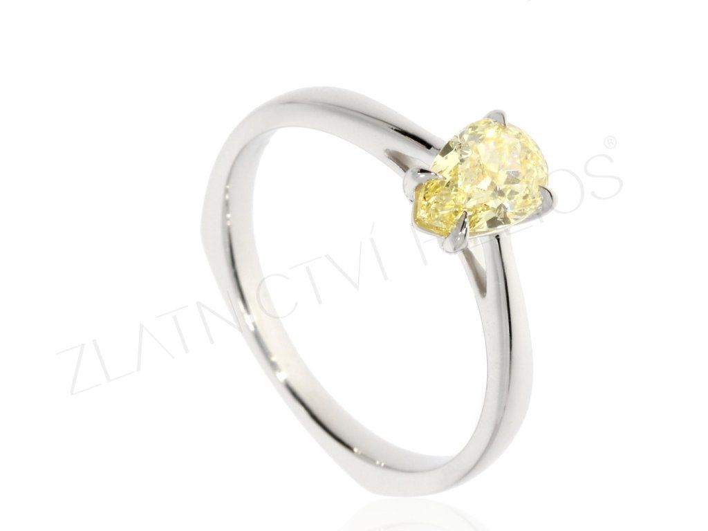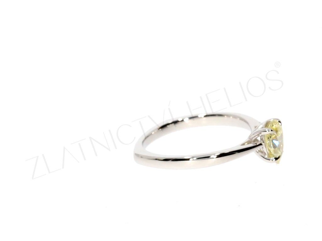 Prsten z bílého zlata ozdoben jedinečným laboratorním diamantem Fancy Intense Yellow je vhodný také jako prsten zásnubní. Pohodlné a komfortní nošení zajistí vnitřní profil prstenu.