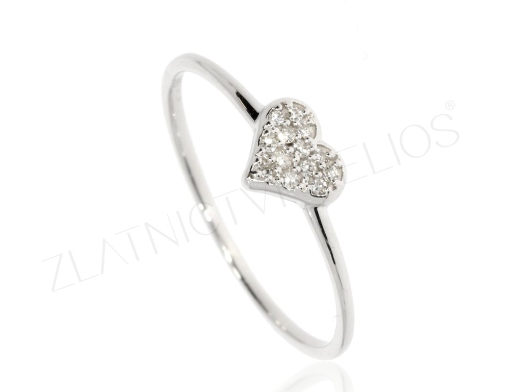Prsten z bílého zlata s diamantovým srdíčkem. Jemný prsten, dárek z lásky.