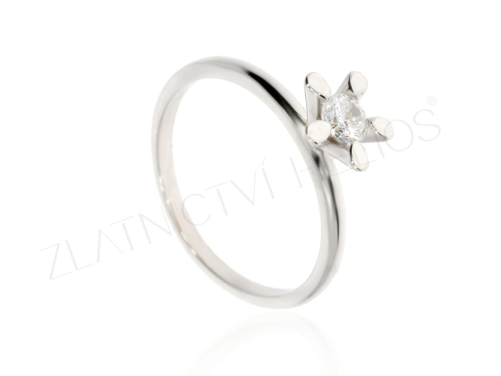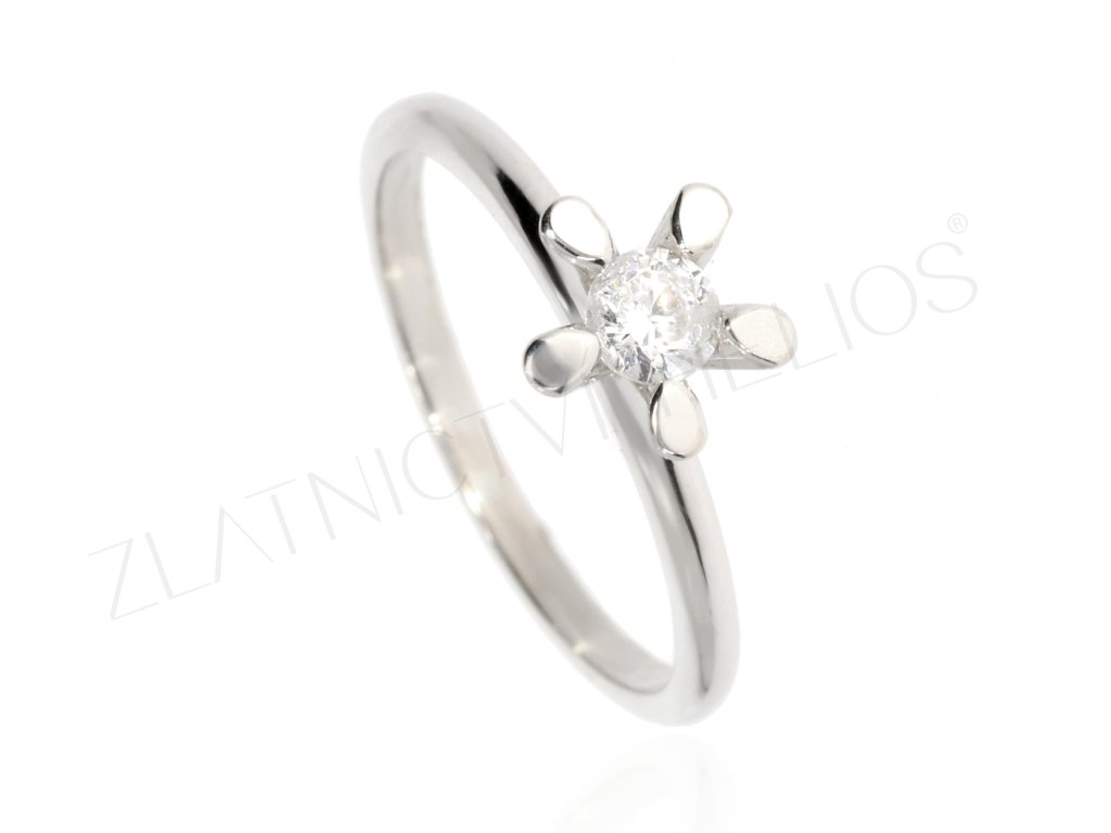 Neodmyslitelnou součástí zásnub je zásnubní prsten. Tento prsten vyrobený ze 14 karátového bílého zlata zdobí korunka, která je jako okvětní lístky a vypadá jako květ v níž je uchycen třpytivý zirkon. Prstýnek se hodí k žádosti o ruku, ale také k výročí nebo narozeninám, je totiž výjimečnou volbou pro ty, kteří chtějí své milované darovat opravdu jedinečný šperk.